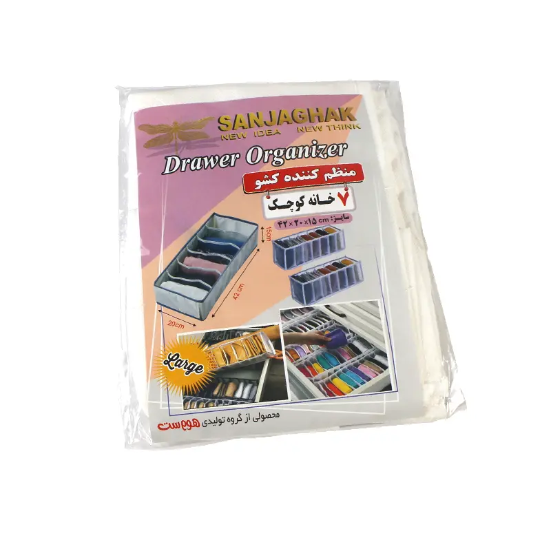اگر کشو پر است اما هنوز وسایل پیدا نمیشوند، مشکل از چیدمان است. یک نظم دهنده کشو لباس میتواند همان فضای موجود را کاربردیتر کند. نظم دهنده کشو ۷ خانه با تفکیک منظم، باعث میشود لباسها شکل خودشان را حفظ کنند و هر بار نیاز به مرتبکاری کامل نداشته باشی. این یعنی صرفهجویی در زمان، نه فقط فضا.