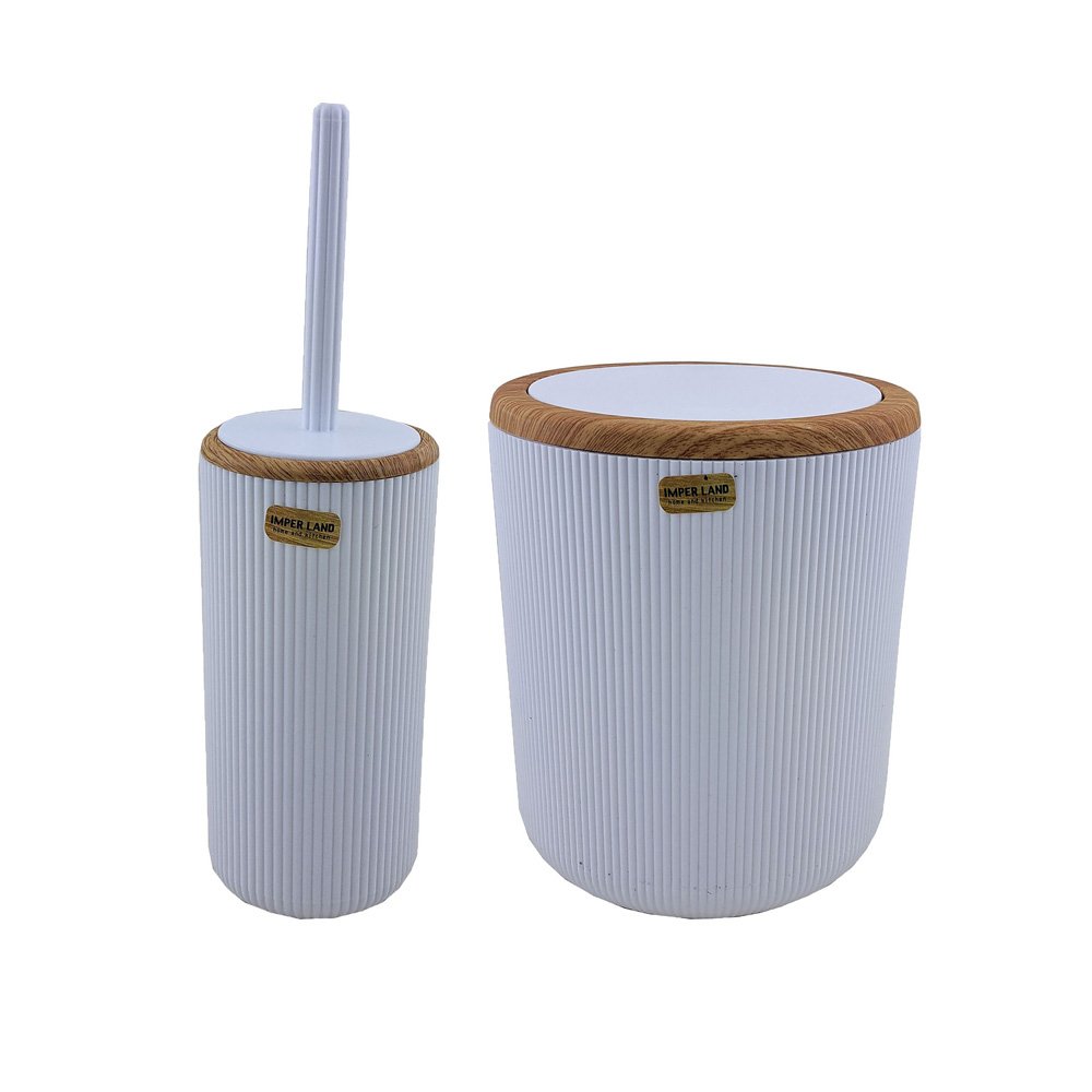 ست سطل زباله و فرچه امپرلند مدل کاریزما طرح چوب