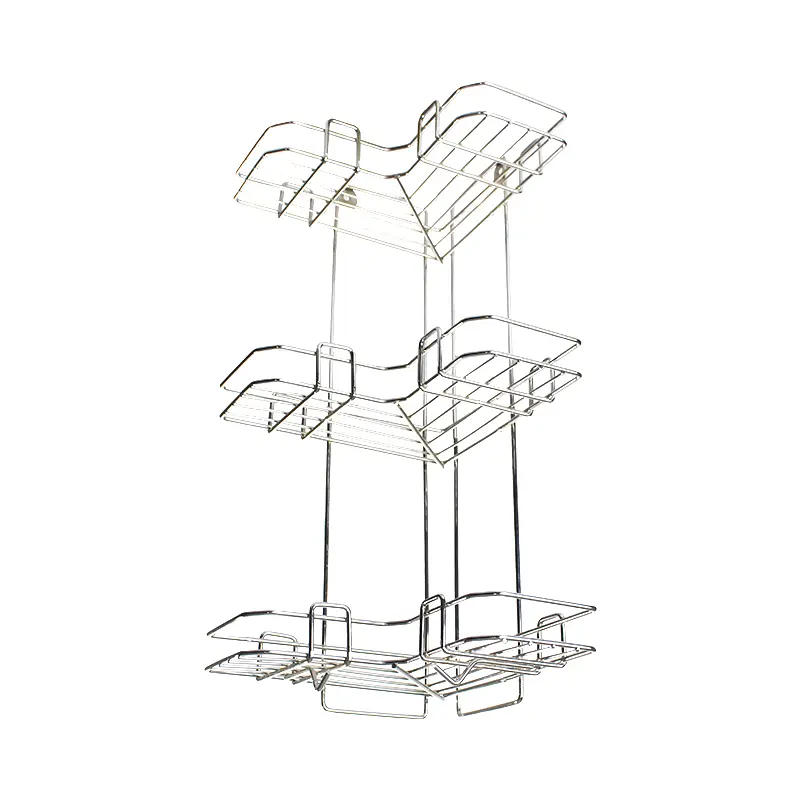 این قفسه حمام به شکل سهگوش ساخته شده تا دقیقاً در کنج دیوار نصب شود. هر طبقه فضای کافی برای قرار دادن لوازم روزمره حمام دارد و چیدمان عمودی آن باعث میشود بدون اشغال عرض دیوار، فضای ذخیرهسازی مناسبی ایجاد شود. اگر قصد خرید استند نظم دهنده دیواری حمام را داری، این مدل میتواند انتخابی منطقی برای استفاده مداوم باشد.