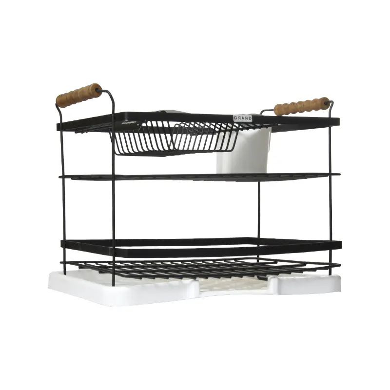 آب چکان دو طبقه دسته چوبی گراند پلاست برای مرتبسازی و خشک کردن ظروف و لیوانها طراحی شده است؛ دقیقاً همان کاری که بعد از هر شستوشو لازم داریم. طراحی دو طبقه کمک میدهد ظروف از هم جدا قرار بگیرند و دسترسی به آنها راحتتر باشد. این مدل بهعنوان یک آبچکان رومیزی، فضای زیادی اشغال نمیکند و برای آشپزخانههای کوچک و متوسط انتخاب مناسبی است.