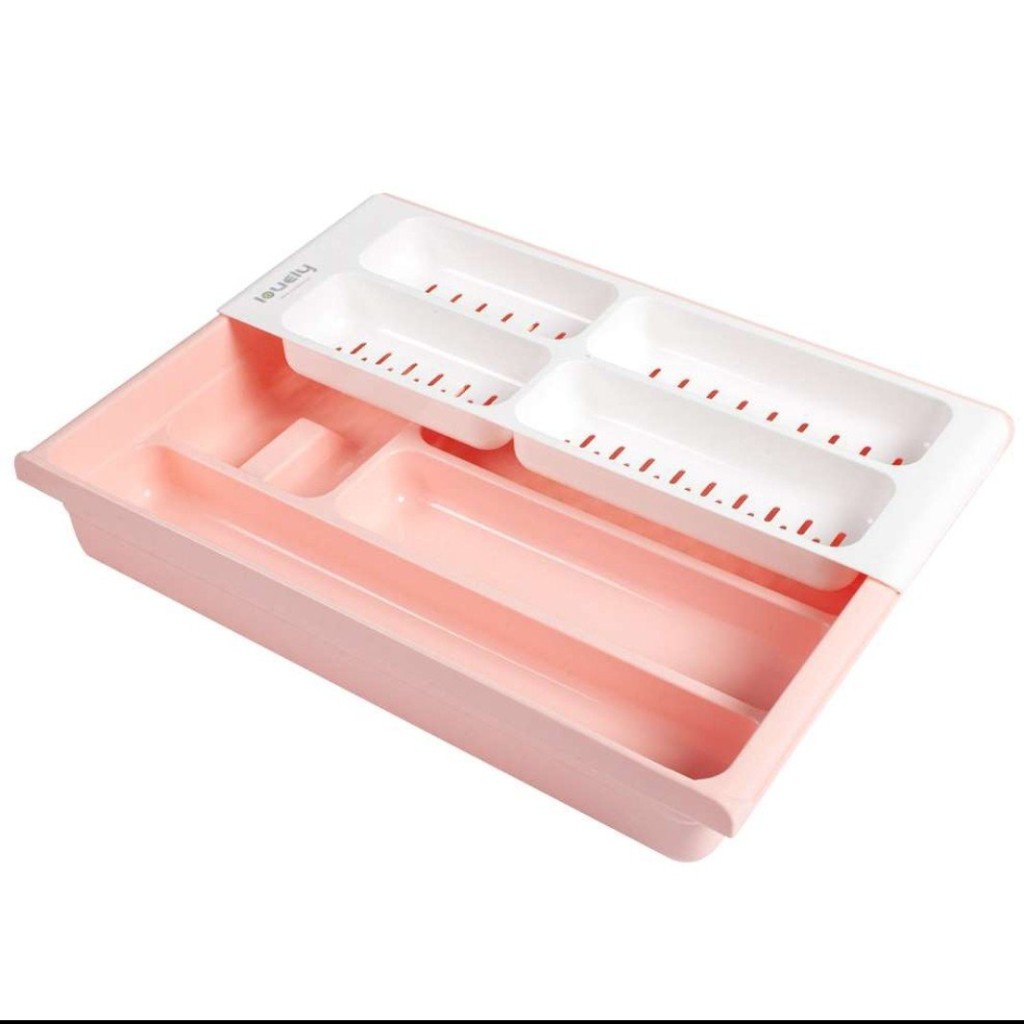 استفاده از نظمدهنده کشوی آشپزخانه باعث میشود که قاشق و چنگالها همیشه مرتب و قابل دسترس باشند و فضای کشو بهینه استفاده شود. طراحی دو طبقه این جا قاشقی باعث میشود وسایل کوچک در بخش بالا و وسایل بزرگتر در طبقه پایین قرار گیرند، که این موضوع باعث افزایش کارایی و نظم میشود. همچنین سبک و قابل شستوشو بودن پلاستیک، تمیز کردن و نگهداری این محصول را آسان میکند.