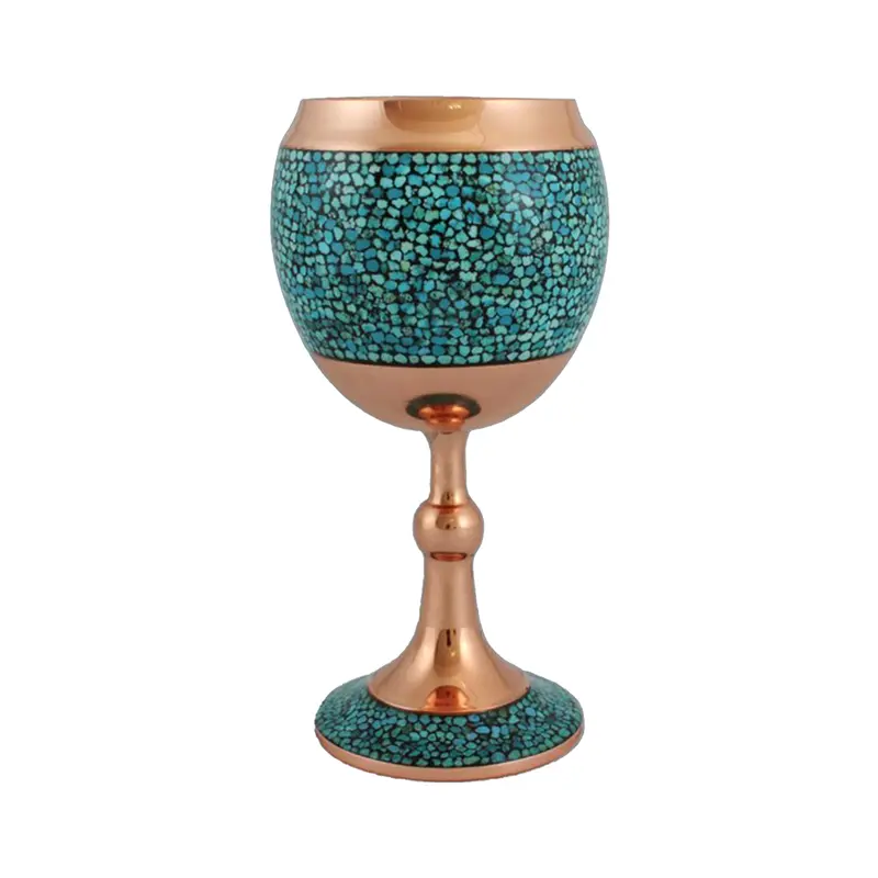 هنر فیروزهکوبی در اصفهان سالهاست که جریان دارد. استادکارها مرحلهبهمرحله جلو میروند؛ از چیدن سنگهای فیروزه روی بدنه مسی تا بتونهکاری، سابکاری و پرداخت نهایی. آخر کار هم یک لایه پلیاستر اضافه میشود تا سطح براق بماند و تغییر رنگ پیدا نکند. حضور سنگ فیروزه، که همیشه جایگاه ویژهای در فرهنگ ایرانی داشته، باعث میشود جام حتی وقتی روی میز خالی گذاشته میشود هم حس ارزش و اصالت داشته باشد.در طول تاریخ، جامها فقط ظرف نوشیدنی نبودند؛ بخشی از تشریفات و زیبایی میز محسوب میشدند. به همین دلیل امروز هم وقتی یک جام فیروزه کوبی را وسط پذیرایی میگذاری، همان حس قدیمی دوباره زنده میشود.