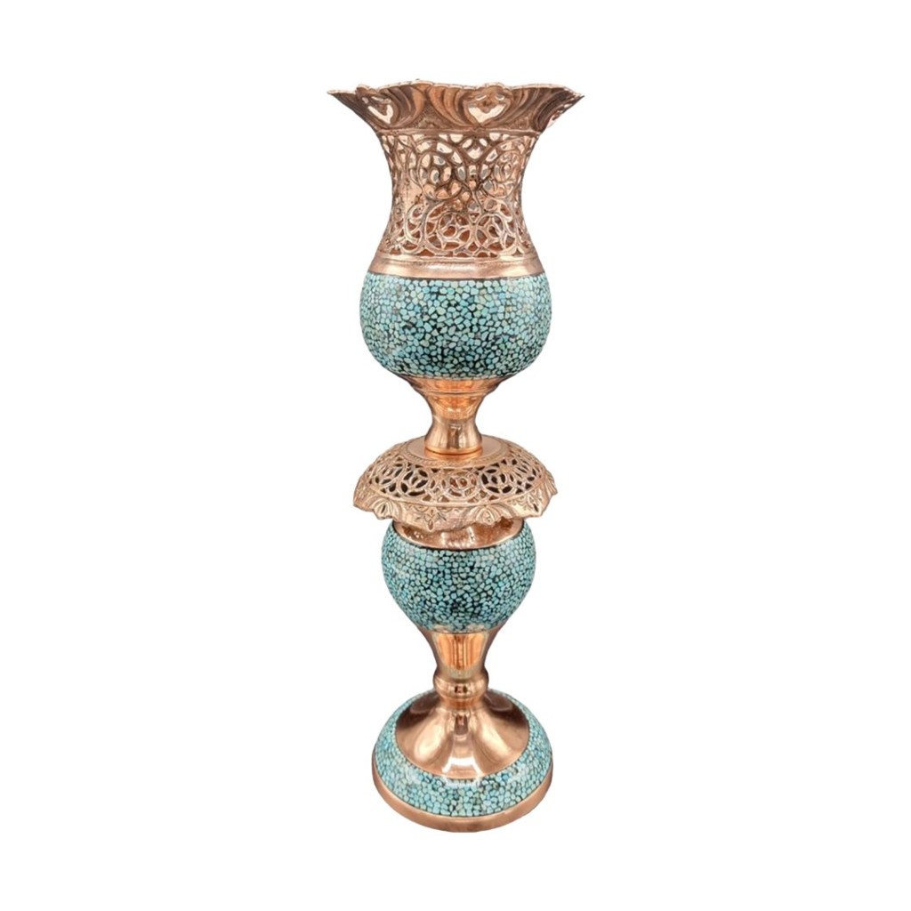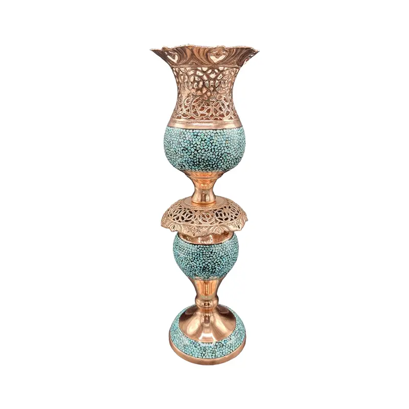 لاله فیروزه کوبی، هنر بینظیر اصفهان، تلفیقی است از دقت استادانه فیروزهکوبی و ظرافت شبکهبری روی مس. هر «لاله مس و فیروزه» با دست هنرمندان ماهر ساخته میشود و نقش گلبرگهایش جلوهای دلنشین به هر فضای داخلی میبخشد. این محصول نه تنها یک شیء زینتی است، بلکه یادآور سنت و فرهنگ ایرانی و هنرهای اصیل اصفهان است.