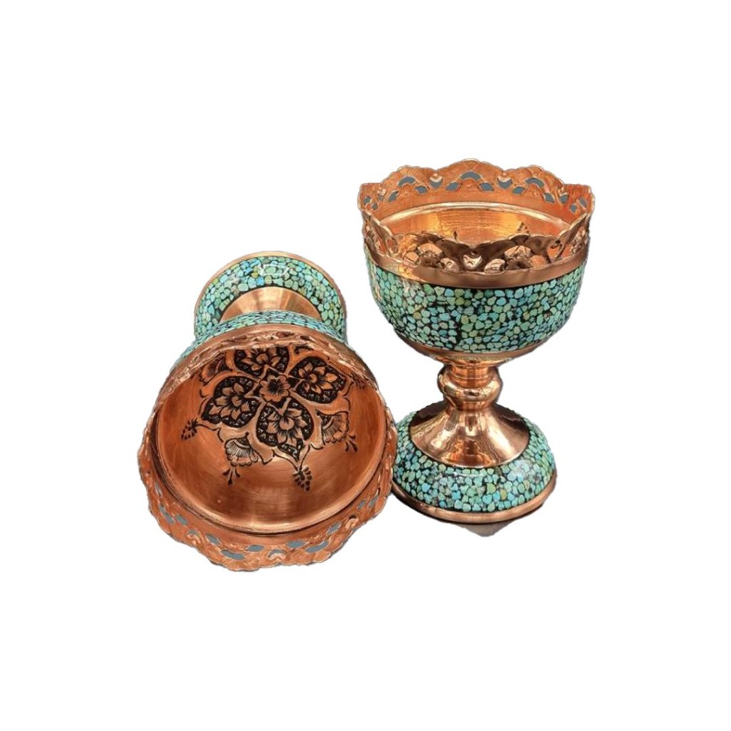 وقتی حرف از آجیل خوری فیروزه کوبی میزنیم، منظور فقط یک ظرف برای آجیل نیست. این ظرفها در عین حال که کاربردیاند، جلوهای هنری هم به میز پذیرایی میدهند. سنگهای ریز فیروزه که با دقت روی سطح مسی کار شدهاند، چشمها را به خود جذب میکنند و یک حس اصالت و دستساز بودن به میز میبخشند. چه در دورهمیهای خانوادگی، چه در مهمانیهای رسمی، این آجیلخوری وسط میز، بهسرعت تبدیل به نقطه کانونی میشود.