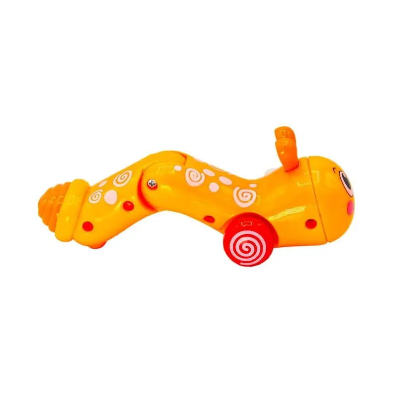 یکی از ویژگیهای جالب این محصول، وجود یک پیچ کوک است که با آن بدنه کرم پیچ و تاب خورده و به جلو حرکت میکند. این حرکت کرمی شکل، تجربه بازی را برای کودک واقعیتر و سرگرمکنندهتر میکند.