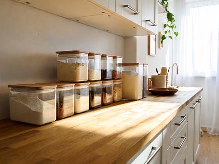 برای ذخیرهسازی مواد غذایی از قبیل برنج، ماکارونی، حبوبات یا چای، استفاده از ظروف نگهدارنده شفاف بهترین انتخاب است، زیرا میتوان بدون باز کردن درب از محتویات داخل آن مطلع شد.